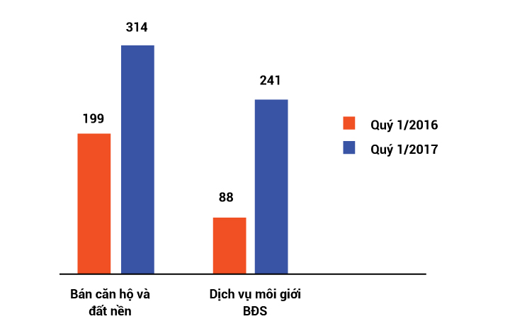 Theo thống kê, doanh thu đạt được là đến từ dự án Luxcity cùng với các dự án đầu tư thứ cấp và sự tăng trưởng trong hoạt động môi giới bất động sản. Trong đó, dịch vụ môi giới tăng gấp 3 lần so với quý I/2016.