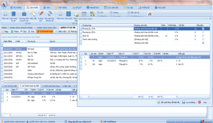 Landsoft Control liên tục mở rộng, nâng cấp nhiều tính năng, đáp ứng nhu cầu mở rộng của Đất Việt. Quá trình tương tác giao dịch giữa nhân viên với khách hàng thiết lập hình thức thanh toán sớm hỗ trợ chiết khấu lãi suất ngân hàng được thực hiện thuận tiện cho khách hàng. Landsoft Control tạo trường thông tin cho phép nhập trên form tạo hợp đồng và hiển thị trên danh sách mua bán giúp nhân viên kinh doanh dễ dàng kiểm soát khách hàng một cách chủ động. Hơn thế nữa, khi triển khai hoạt động Marketing, Landsoft Control đã tích hợp tính năng SMS và Email tự động theo trường đã chọn, giải pháp tối ưu hóa cho việc lưu trữ và kiểm soát dữ liệu khách hàng/ cư dân.