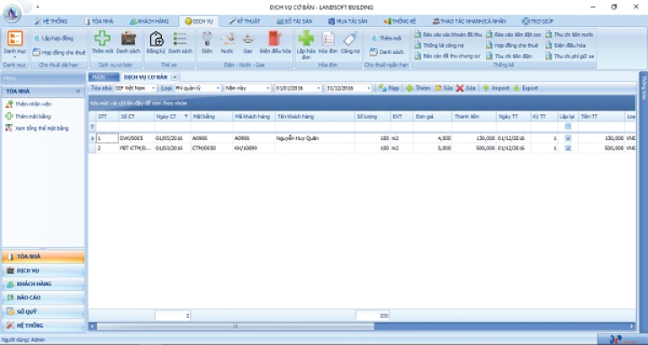Phần mềm xây dựng các module như quản lý thông tin khách hàng, cư dân; thu phí phí dịch vụ bảo trì bảo dưỡng thiết bị trong tòa nhà, quản lý tài sản, mua sắm trang thiết bị tòa nhà, quản lý lịch làm việc, nhắc việc bảo trì, sửa chữa, vệ sinh, quản lý vận hành thang máy, bãi giữ xe, các hợp đồng dịch vụ: điện, nước, điện thoại, TV cáp, Internet…. hỗ trợ chức năng quản lý, theo dõi những vi phạm hay thắc mắc của khách liên quan tới dịch vụ của tòa nhà sẽ được, chức năng gửi email, SMS nhắc lịch bảo trì, sửa chữa cho ban quản lý và lịch nhắc đến hạn công nợ, hết hạn hợp đồng cho khách trong tòa nhà.