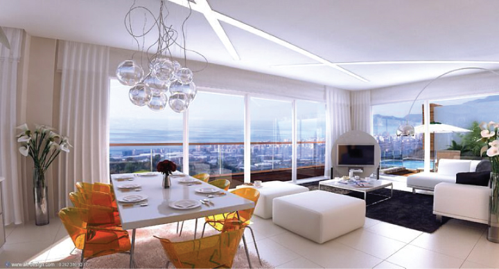 Không gian sinh hoạt được thiết kế theo lối kiến trúc hiện đại, đề cao tính công năng cùng sự kết hợp hài hòa với thiên nhiên. Các khu vực như phòng ngủ, bếp ăn, khu vực vệ sinh đều được thiết kế nằm cùng trên một bặt bằng, tạo ra sự liên kết thuận tiện nhất cho toàn bộ căn hộ cũng như không khí ấm cúng cho tất cả thành viên trong gia đình. Hơn hết, lối thiết kế này thích hợp cho gia đình có người già và trẻ nhỏ, không những đỡ mất sức mà còn giảm nguy cơ thiếu an toàn khi di chuyển giữa các tầng lầu.